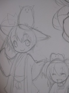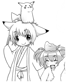 ペン入れ&トーン処理後。下書きを無視しまくり。 よく「お前の下書きは下書きじゃなくてラフだ」と言われる。 実は落語家を目指しているという設定だったりする。 ♂か♀かまだ決めてない← 名前は「えんらく」、原型ピカは「ししょう」。