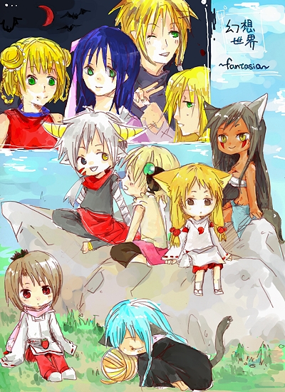 某SNSの創作サークルマネージャー、硝子さんから集合絵を頂きました^///^ すごい!!!全員いる!!! ちなみにお団子金髪と、角白髪と褐色獣耳と、和服狐が自分が参加せていただいたキャラです。 こんなに可愛く描いてくださるなんて感激至極!